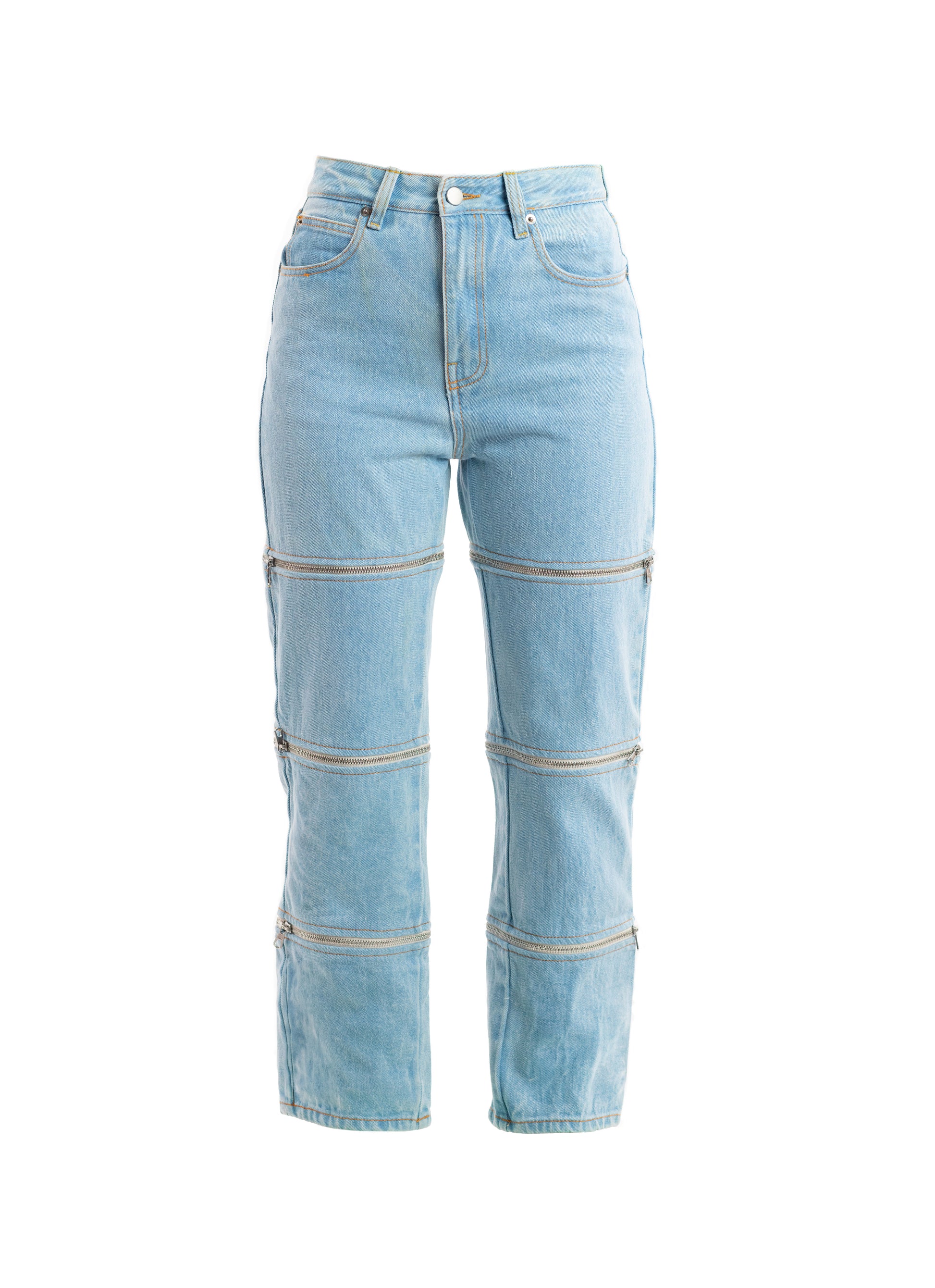 Denim 98% Cotone 2% Elastan Celeste con trattamento Stone-Bleached.